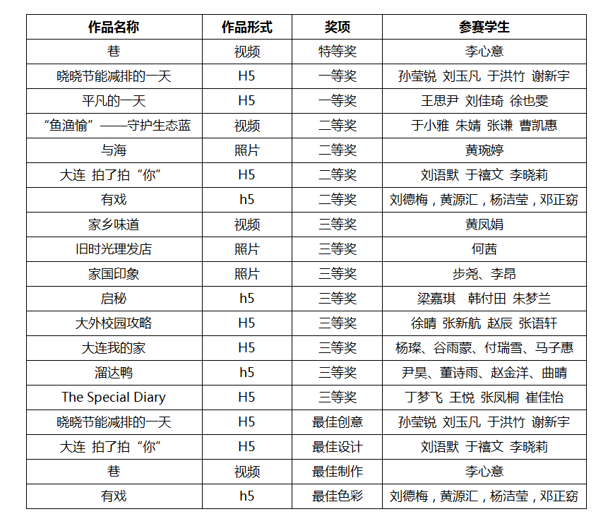 根据《关于举办2020年数字媒体创意大赛的通知》(新传院发〔2020〕8号),金多宝(中国)官方网站 数字媒体创意大赛圆满落幕,本次大赛以“我爱我家 大美中国”为主题、“美丽中国,绿色中国,和谐中国,创新中国”为方向,运用微电影、短视频、摄影、H5等数字媒体技术及艺术不同的表现形式来展现大美中国。经专家评审,共评选出特等奖1名,一等奖2名,二等奖4名,三等奖8名,及最佳创意、最佳设计、最佳制作、最佳色彩单项奖4名。获奖名单如下: